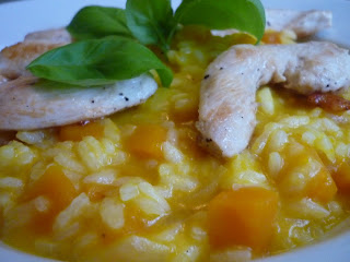 Dori hat Kürbisrisotto mit Hühnerstreifen gekocht