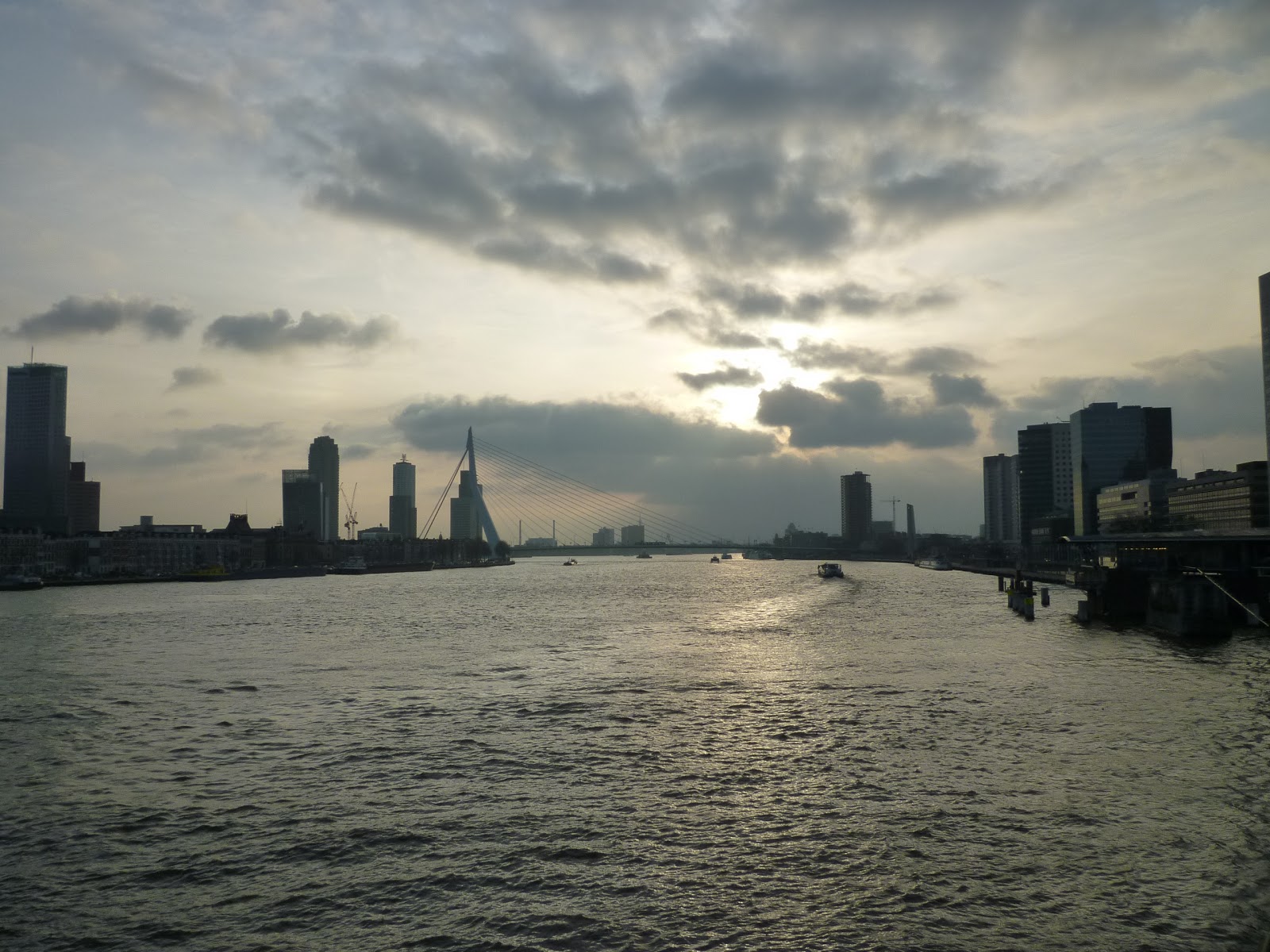 In Rotterdam haben wir uns die berühmten Kubus-Häuser von außen und innen angeschaut (nicht sehr praktisch zum Wohnen, außerdem unputzbare Fenster) und uns danach beim Vapiano gestärkt (da kommt fast sowas wie Heimatgefühl auf, wo ich doch in Wien auch so gern hingeh). Die Chrissie schaut in München jetzt vielleicht auch mal beim Vapiano vorbei :) Dann waren wir gewappnet für die Erasmusbrug und die Willembrug. Vom Hotel New York aus gings dann mit meinem Lieblings-Wasser-Taxi rüber in den Veerhaven und anschließend durch Het Park zum Euromast. Da kann man mit dem Lift auf eine Plattform fahren, dort schon mal Fotos machen und frieren und anschließend mit einer sich drehenden Plattform weiter hinauffahren (Puddingalarm für die Beine). Schön war die Aussicht und auch danach der feste Boden unter den Füßen :) Geschafft vom langen Tag gings zurück nach Utrecht, der Albert hat Sushi für uns vorbereitet und schön gekühlt und jetzt heißts langsam Abschied nehmen, denn morgen muss die Chrissie wieder zurück nach München (zum Vapiano).